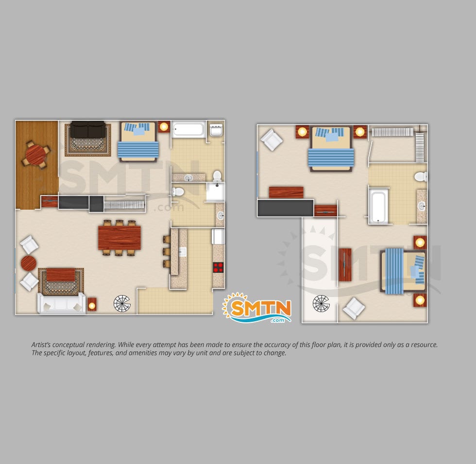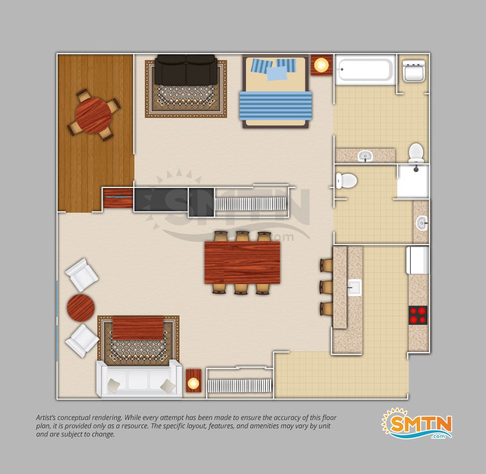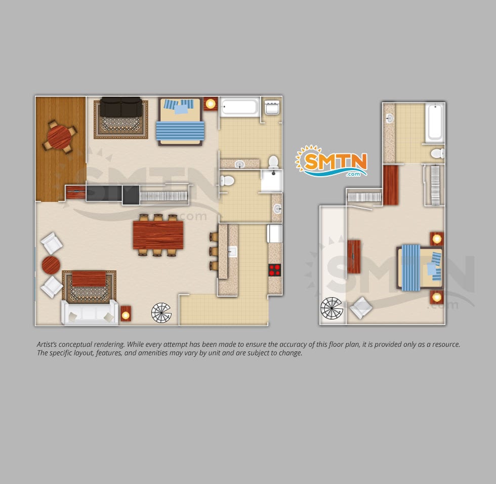 The loft-style villa units at the StreamSide Douglas property are split between well-appointed one and two bedroom spaces filled with updated furnishings and tasteful features. With towering spiral staircases in the center of each suite leading to the second level, you and your entire party will have enough space to move around as you see fit and still be comfortable. With homelike amenities like full kitchens, fireplaces, and your own balcony, it's hard to see why anyone would pass up an opportunity to own a private escape at the StreamSide Douglas.